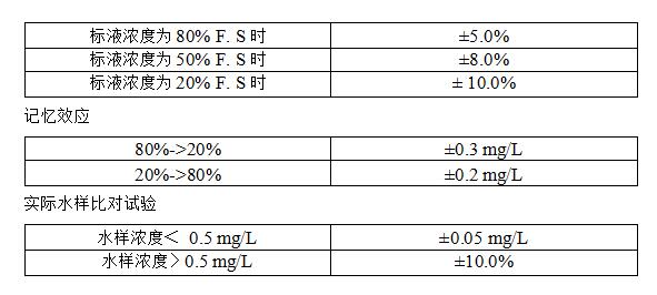 測定下線:0.05mg/L(示值誤差±30%)零點(diǎn)漂移:±5.0%